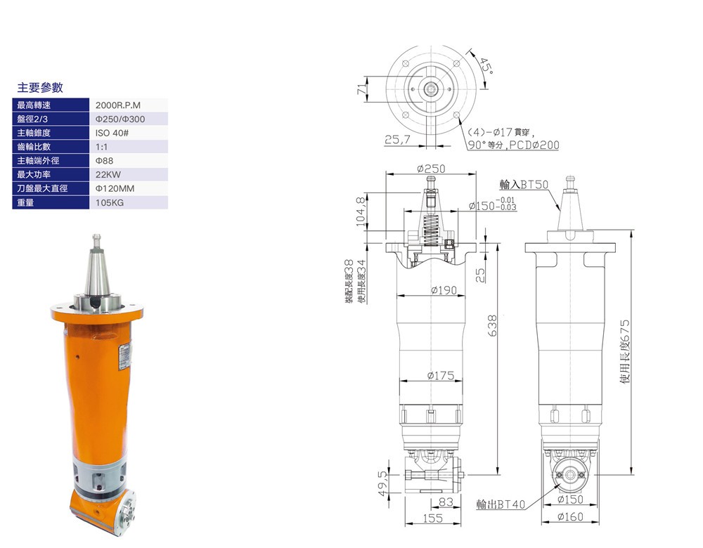 KS-A73 小型延伸角銑頭